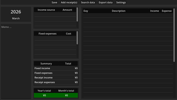 One Yen isn't a fancy money tracker, there's no AI, there's no connectivity between different pc's, and there's no data tracking from remote servers to spy on you. Just you and One Yen to track your income and expenses.